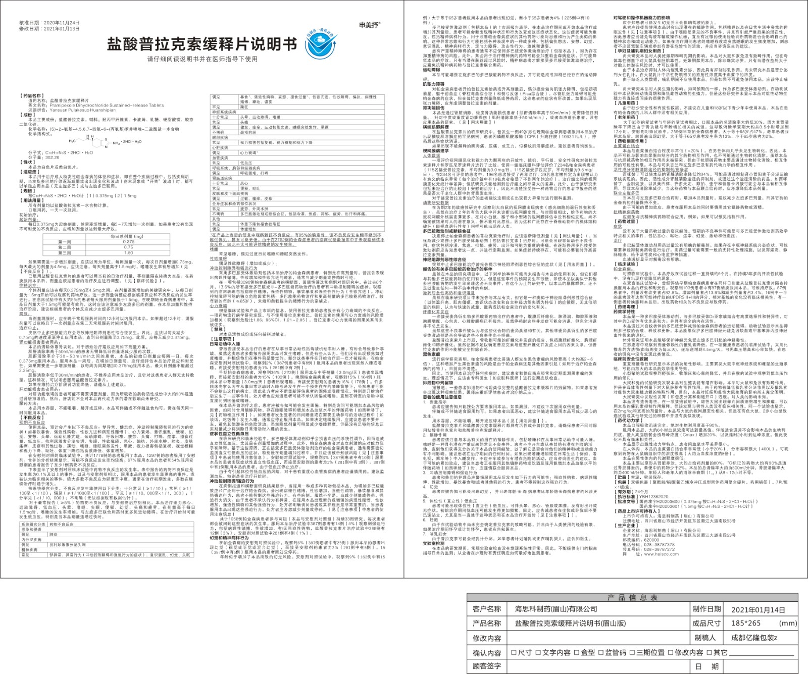 【通用名】鹽酸普拉克索緩釋片